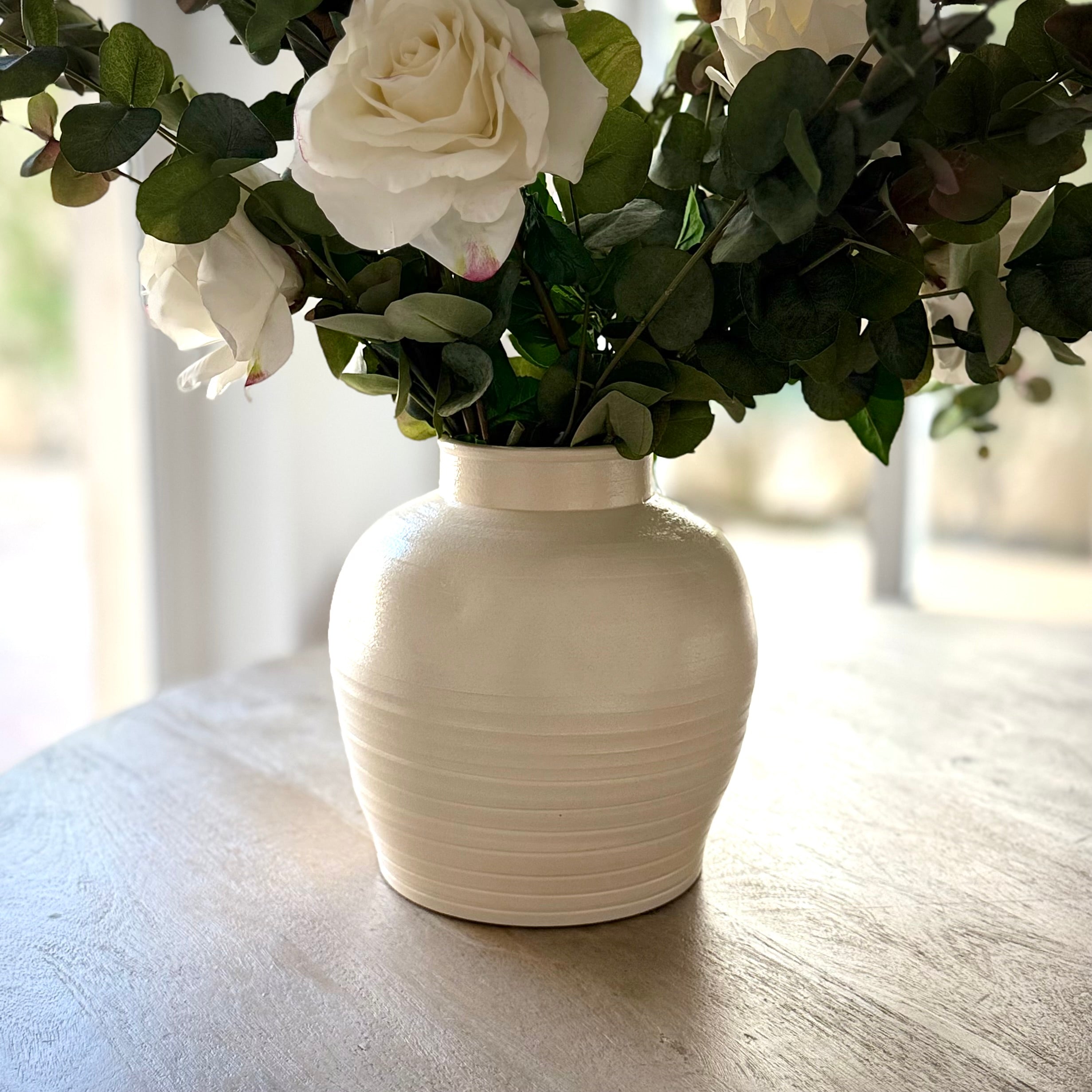 The Oxford Vase combines soft cream glazing with rustic charm, offering timeless versatility for every setting.