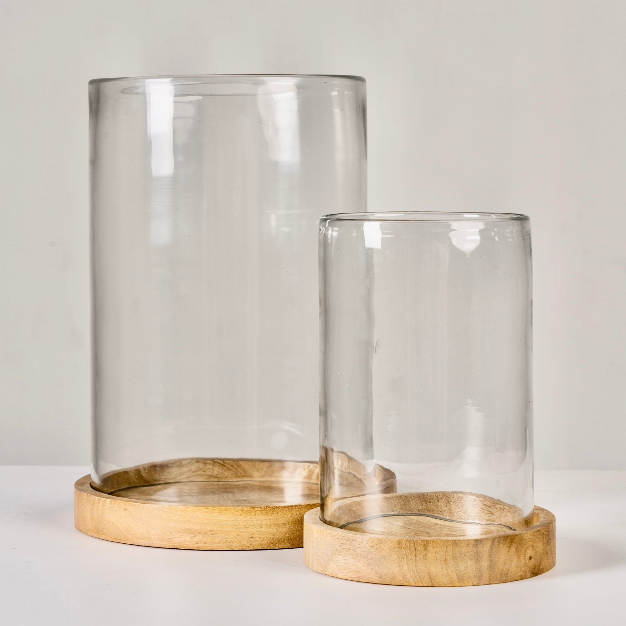 Handcrafted in India from mango wood and soda-lime glass, the Haven Wood and Glass Candle Holder celebrates the beauty of natural materials, adding warmth and atmosphere to any space.