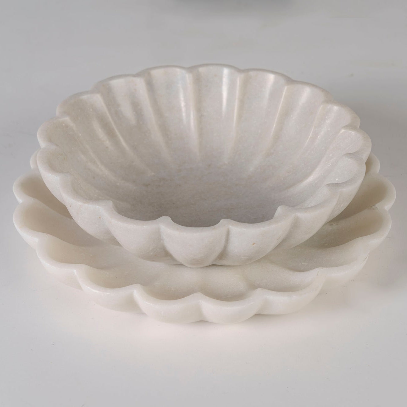 The Petal Marble Heritage Plate brings sculptural grace to every space, reflecting the quiet elegance of Rajasthani white marble and the artistry of skilled handcrafting.