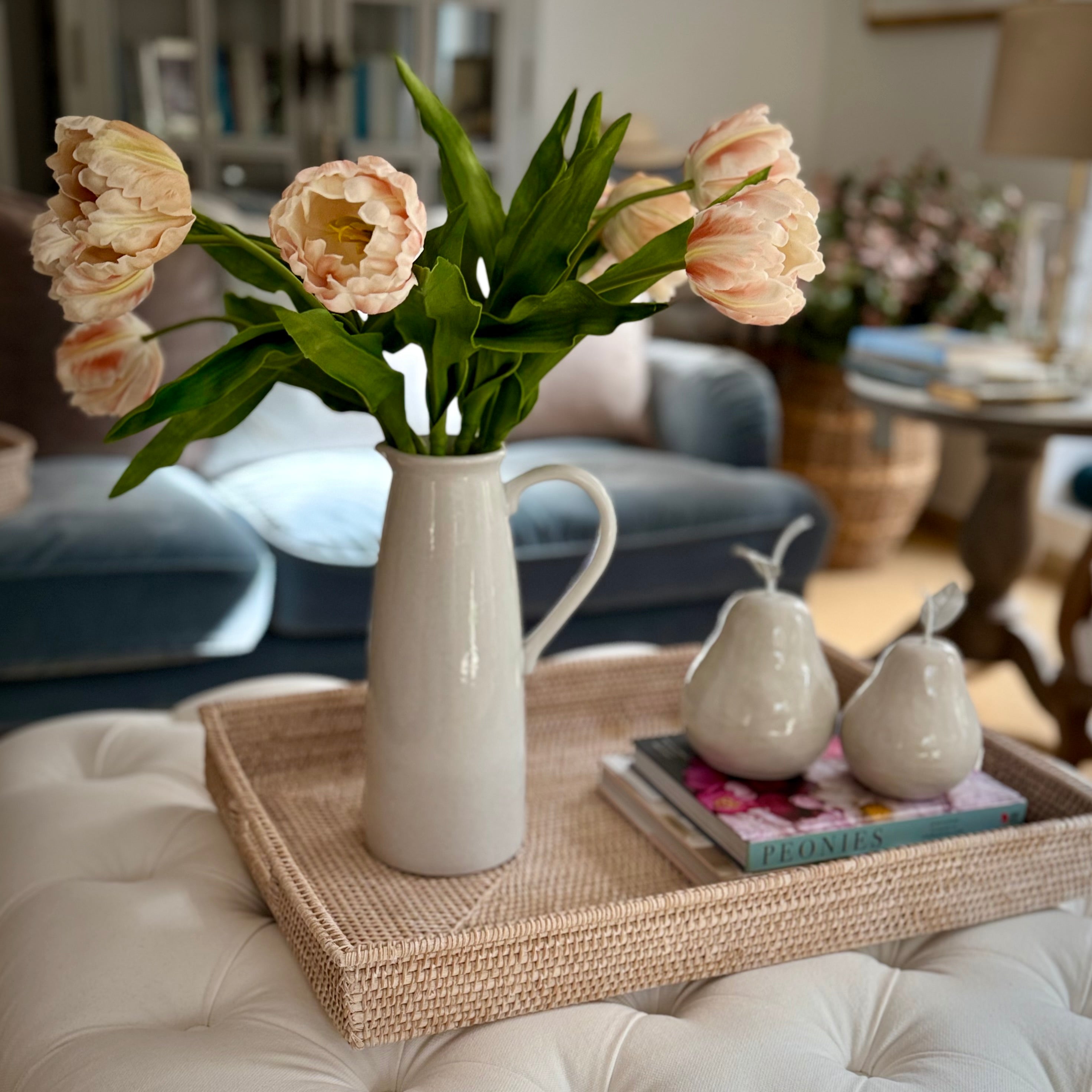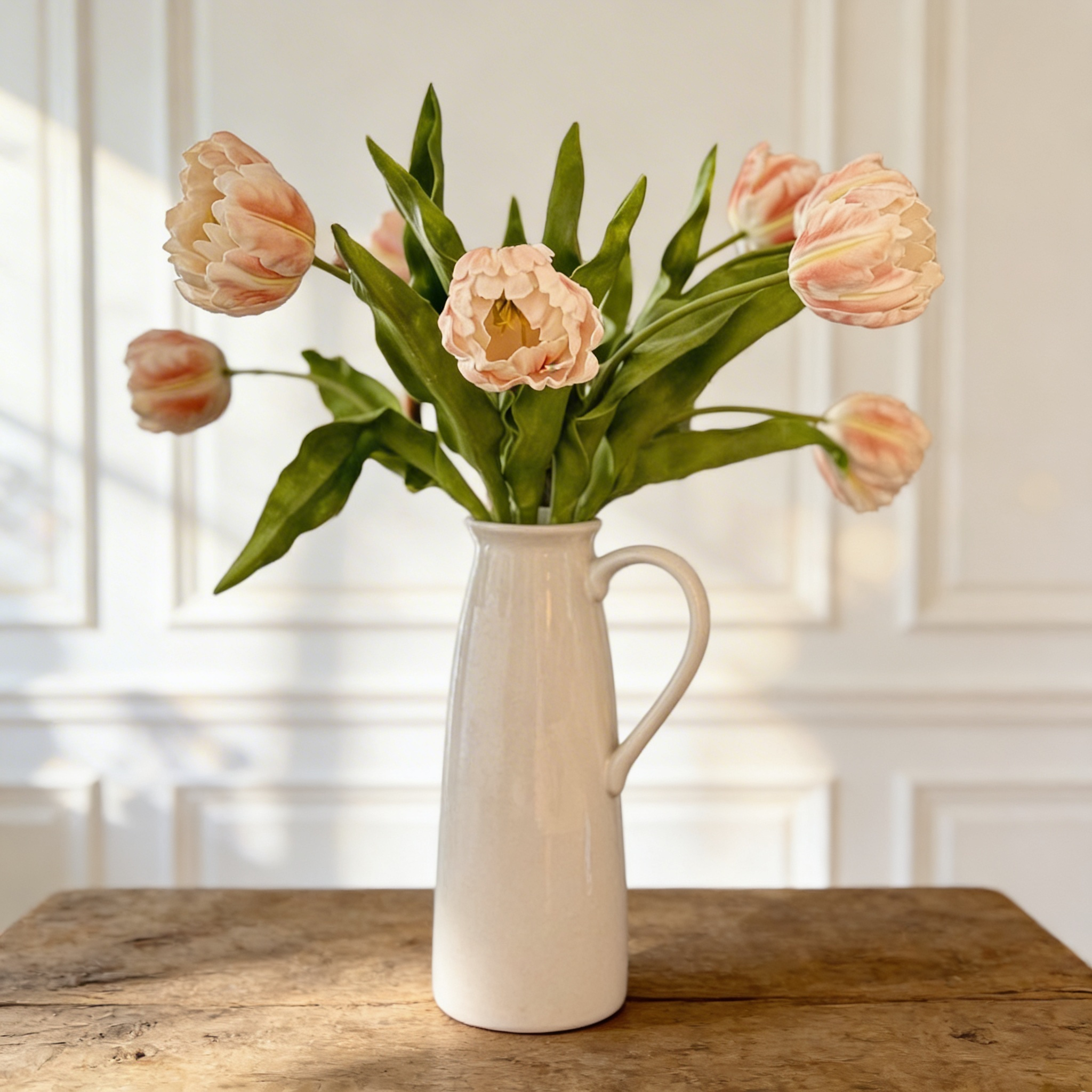 The Spring Tulips Luxury Faux Bouquet brings a just-picked look to your home with lifelike detail and a gentle silhouette. Each stem is crafted with a real-touch finish for a naturally soft feel.