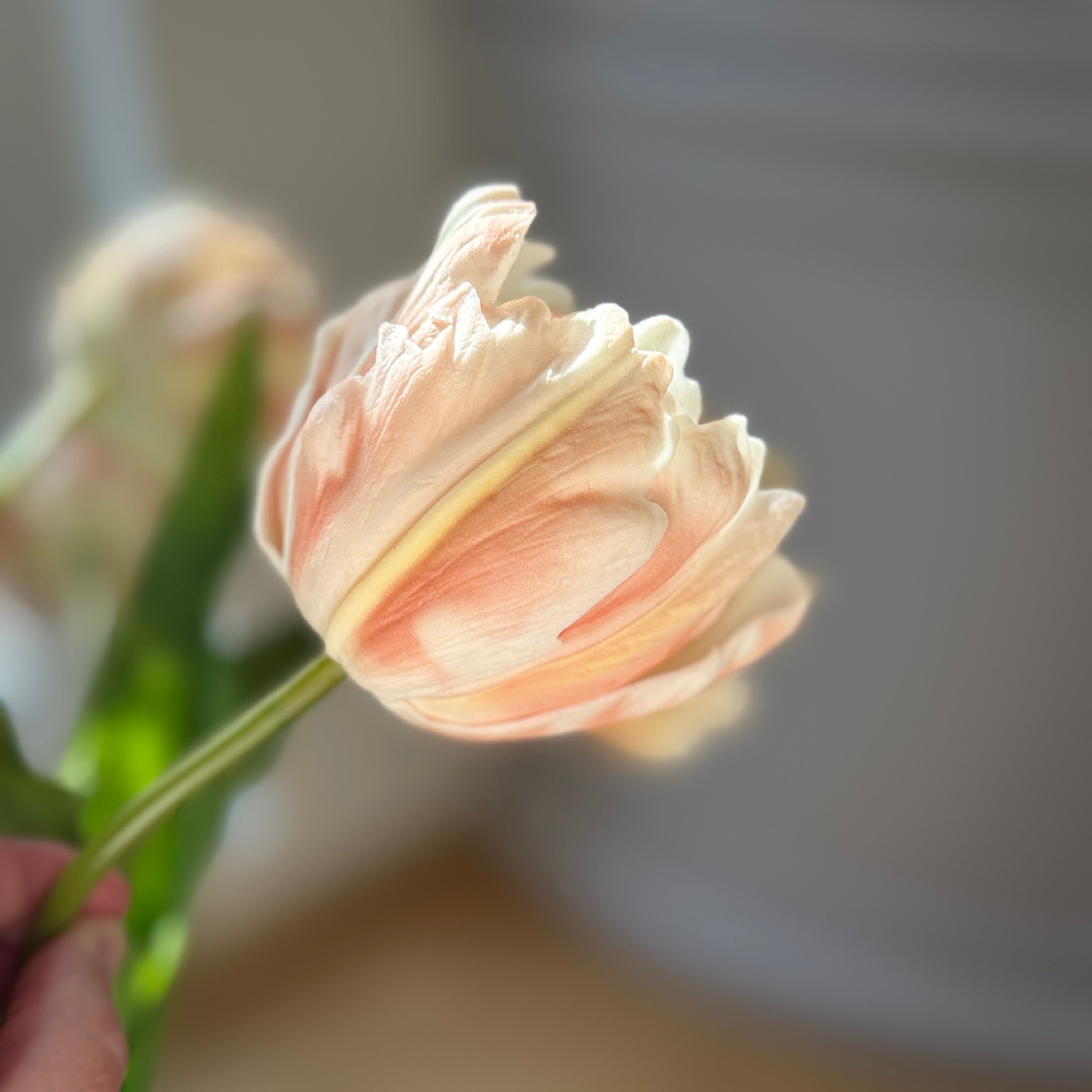 - Two pale peach faux tulips