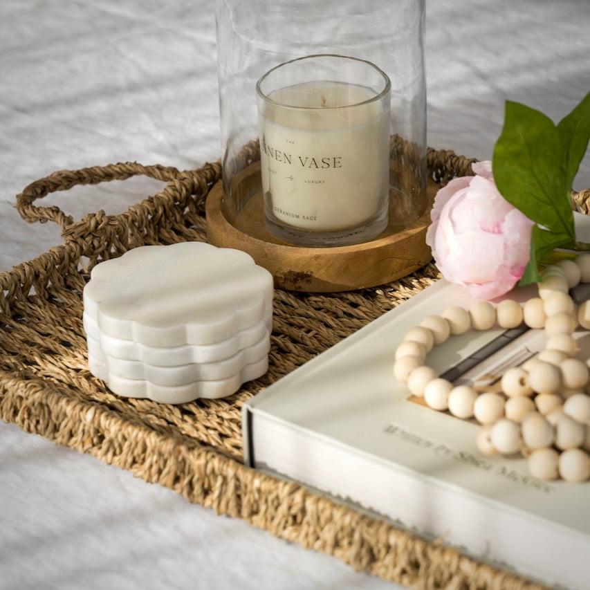 Handcrafted in Vietnam from natural seagrass, the Woven Seagrass Rectangular Tray brings rustic warmth and organic texture to any space. Its natural tone and tactile weave make it both beautiful and practical for everyday styling.